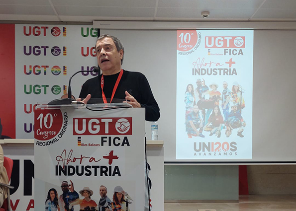 En su intervención en el acto de clausura del 10º Congreso Regional, el secretario general de UGT FICA, Mariano Hoya, ha comenzado felicitando a la nueva Comisión Ejecutiva por el magnífico resultado obtenido, que viene a refrendar el trabajo que ha venido desarrollando la Ejecutiva liderada por Sonia Saavedra, y que refleja la "buena salud de que goza la Federación". Mariano Hoya ha agradecido, además, el apoyo recibido de la federación de Baleares y especialmente, de Sonia, "que siempre ha estado junto a mí". También ha agradecido que tanto en el 44º Congreso Confederal, en el que UGT FICA planteó debates y propuestas nuevas de futuro para el conjunto de la Organización, como en el 29º Congreso Federal de UGT FICA celebrado el pasado mes de diciembre en Málaga, y en el que se hizo visible la necesidad de contar con una industria fuerte en nuestro país, en línea con el lema del congreso "Ahora Más Industria".