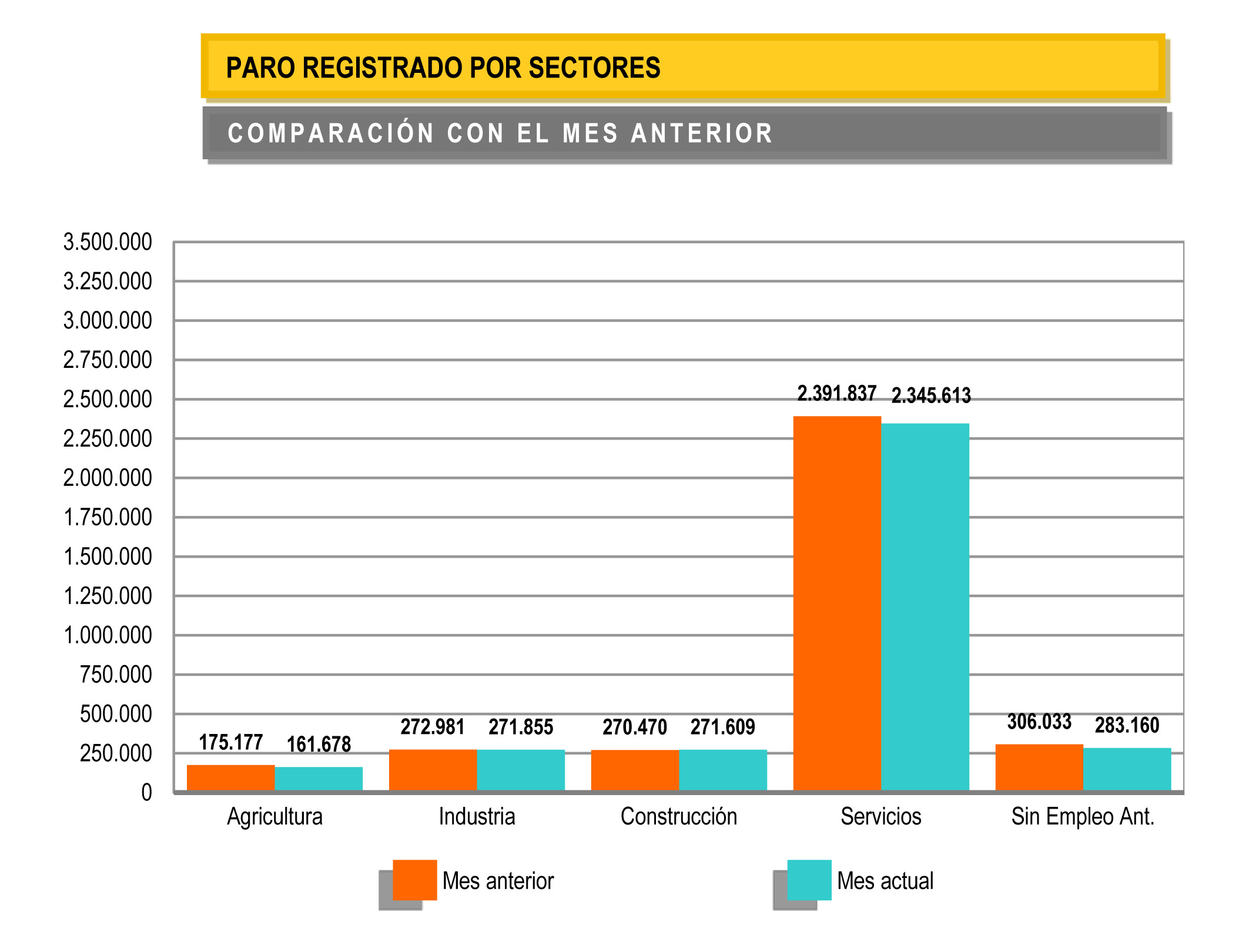 Por contra, el sector agrario consigue reducir en nada menos que 13.499 personas las inscritas en el SEPE, un total de -7,71%.